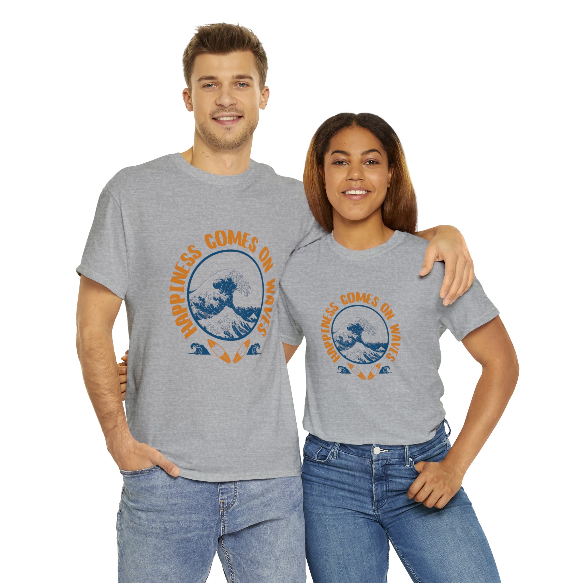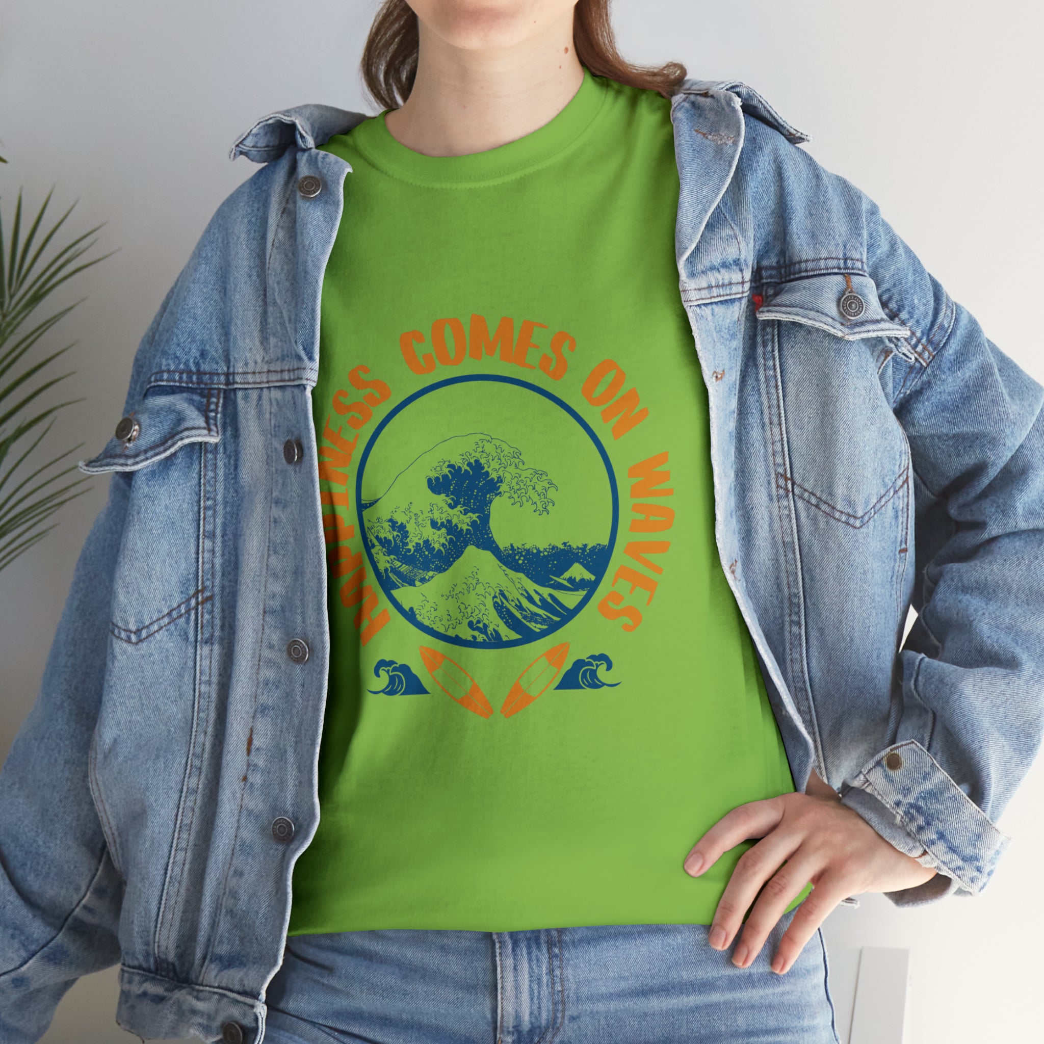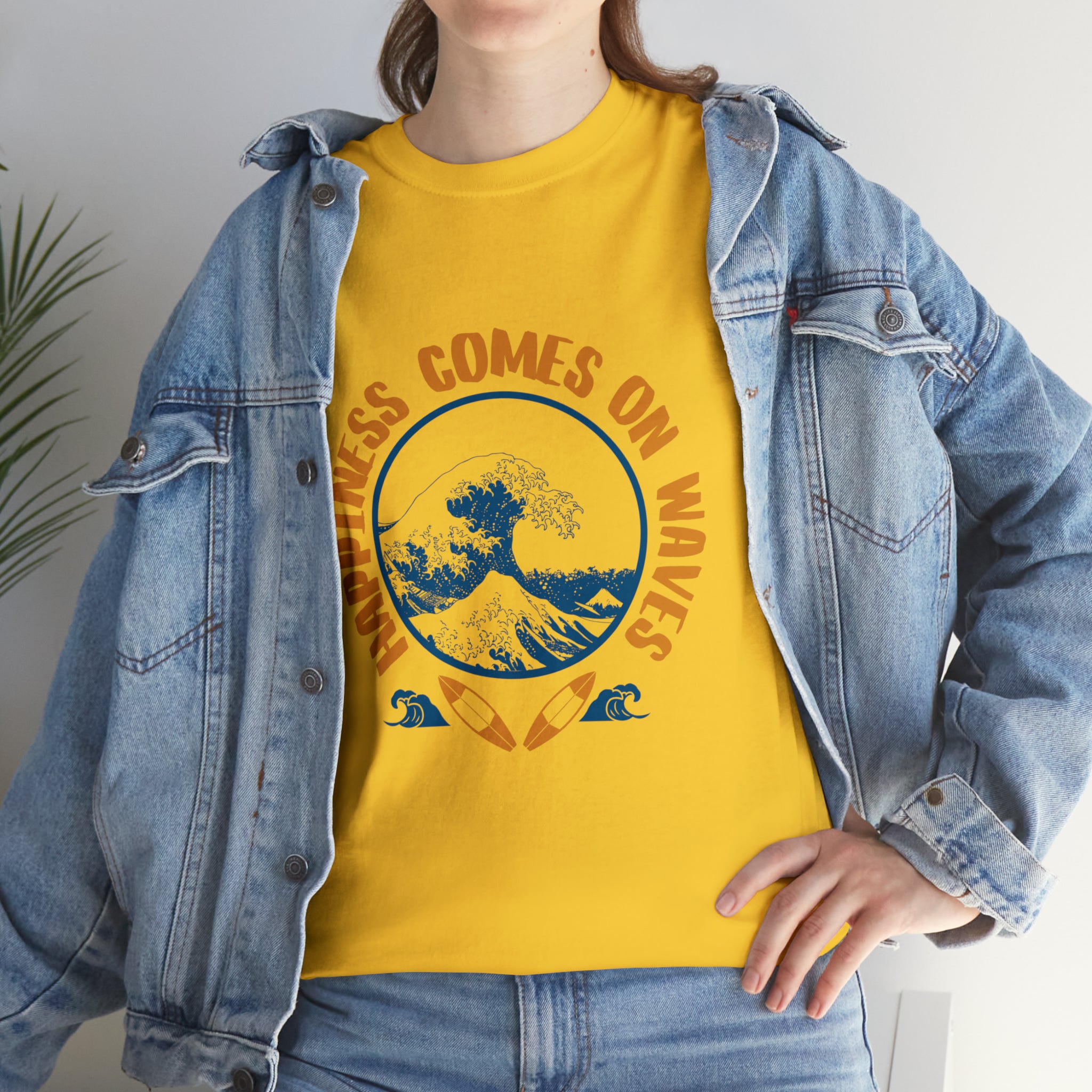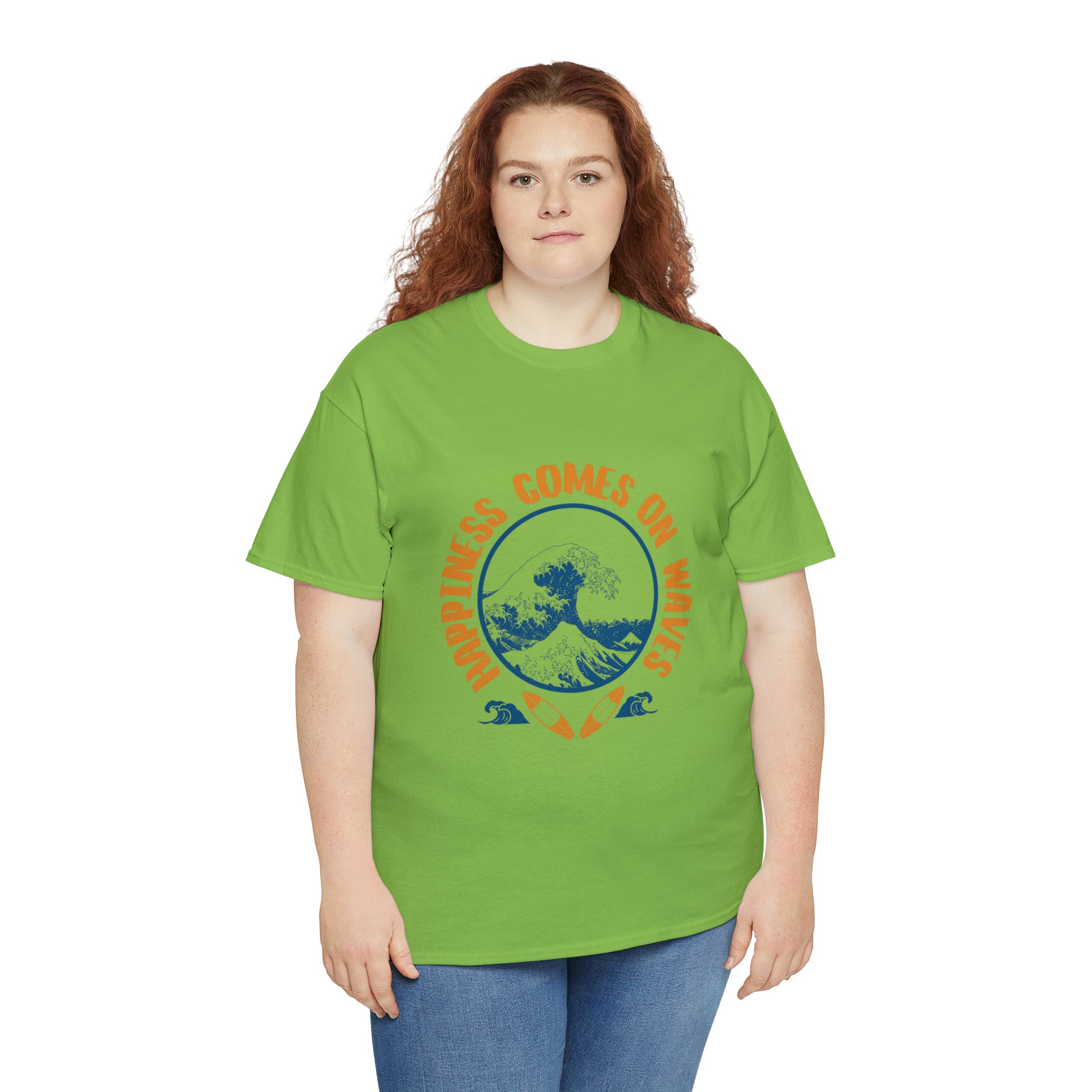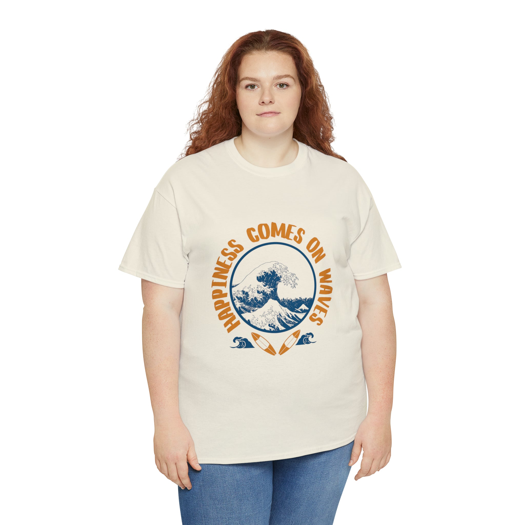 Shirt Happiness Comes On Waves Tropical Vacation Summer Beach Coastal Graphic T-Shirt Gift Unisex Heavy Cotton Tee