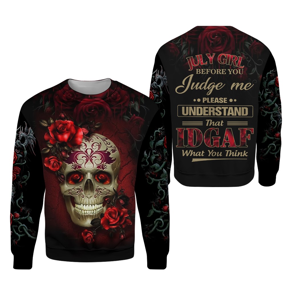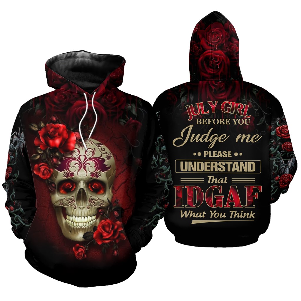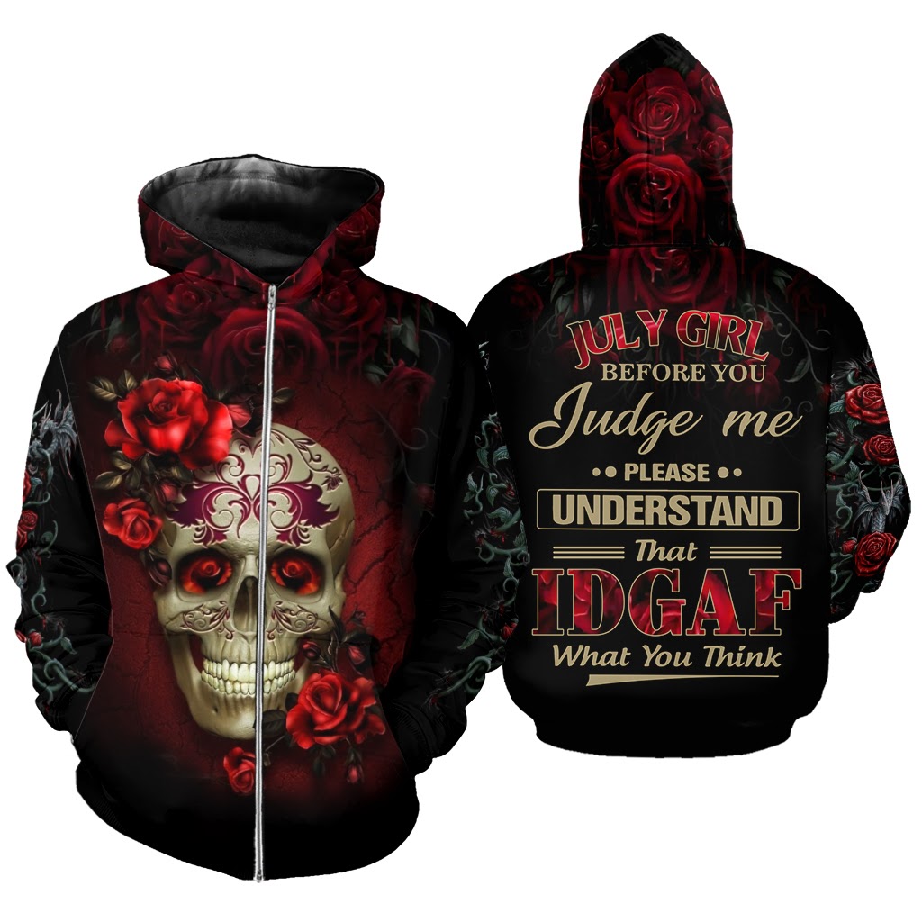Skull Rose July Girl 3D All Over Printed T-Shirt, Hoodie, Zip Hoodie