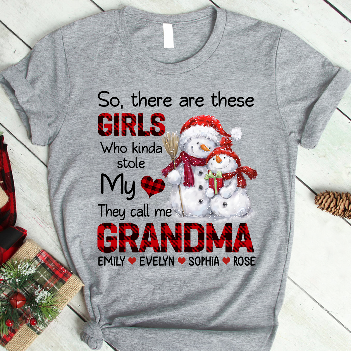 So, There Are These Girls – Grandma Snowman Christmas Personalized With Grandkids Shirt