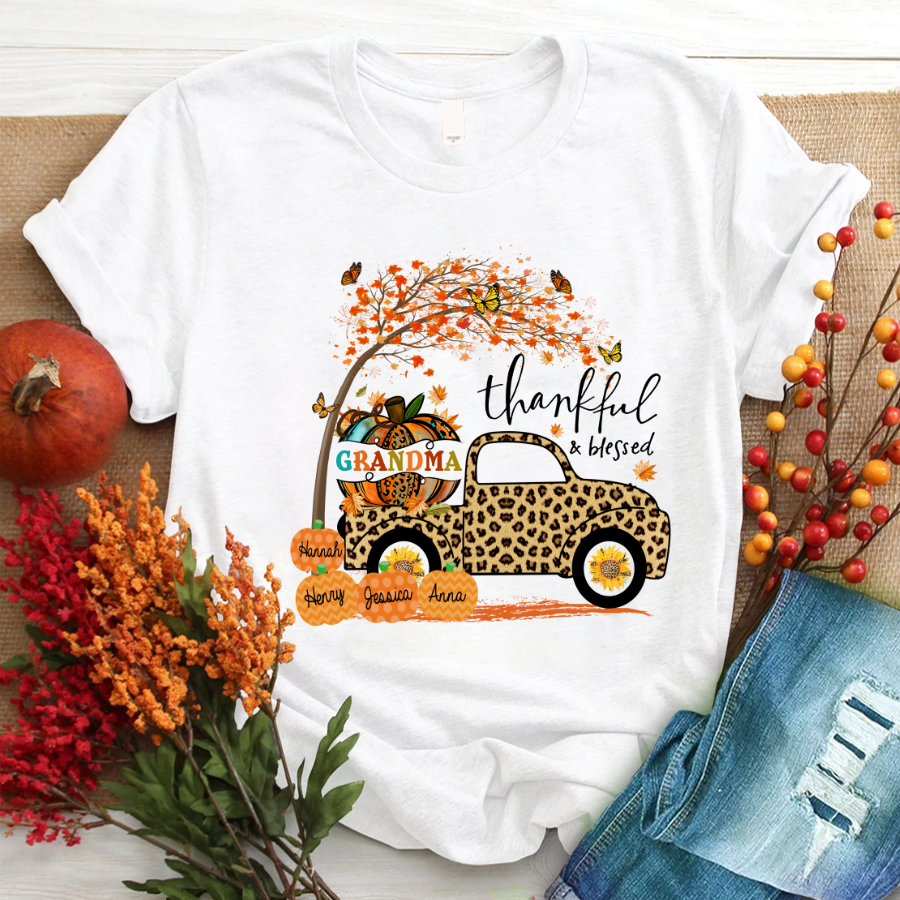 Thankful And Blessed Grandma Pumpkin Truck Autumn T-Shirt