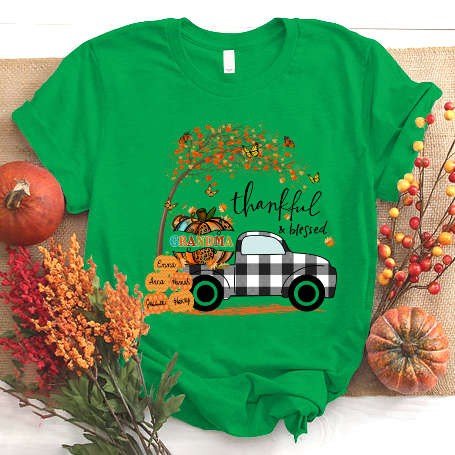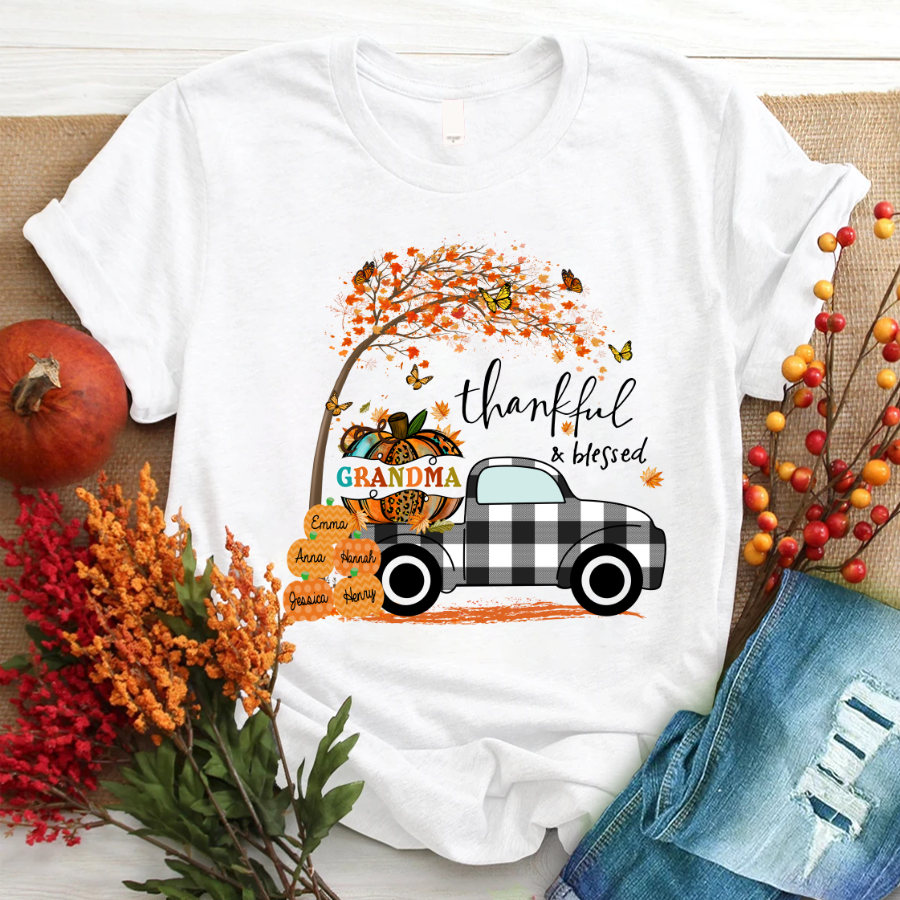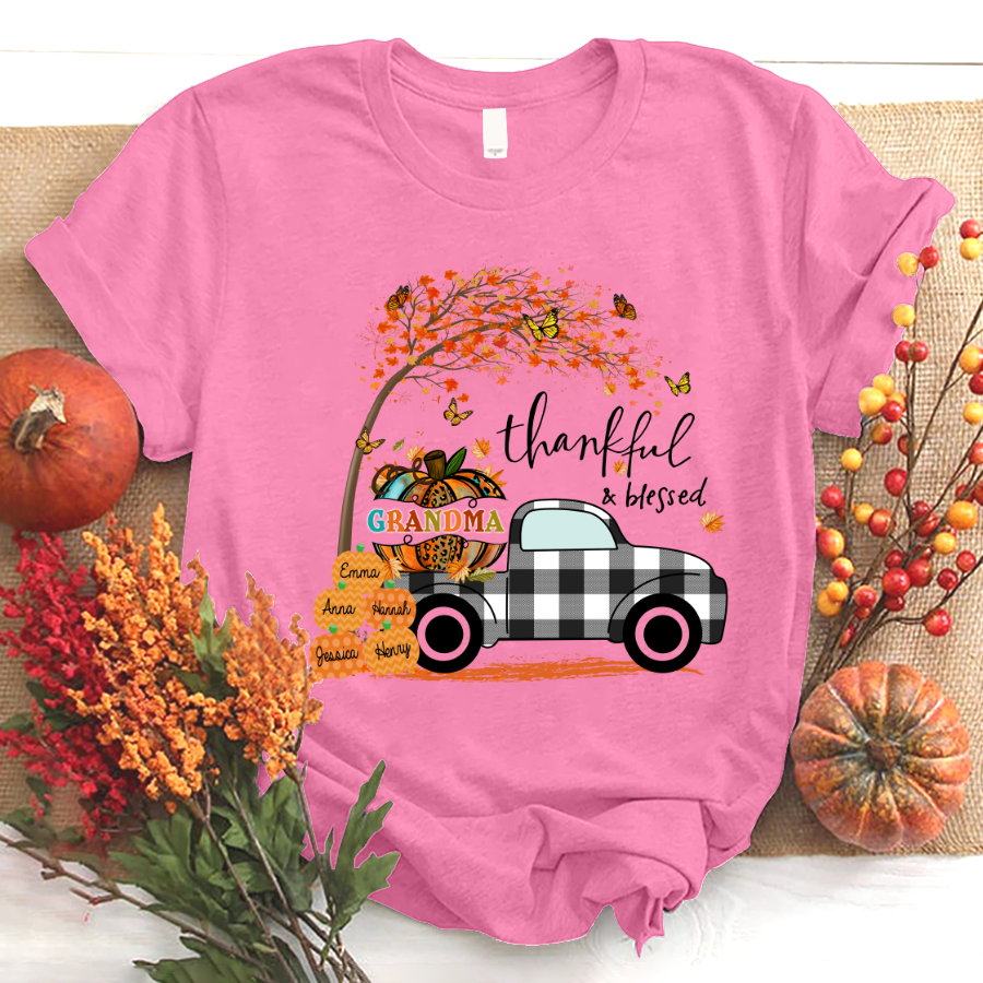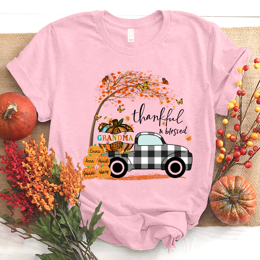 Thankful And Blessed Grandma With Grandkids Truck Autumn T-Shirt