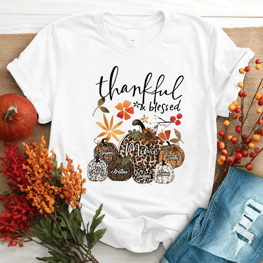 Thankful And Blessed Mimi Pumpkin Fall 2021, Personalized Grandma T-Shirt
