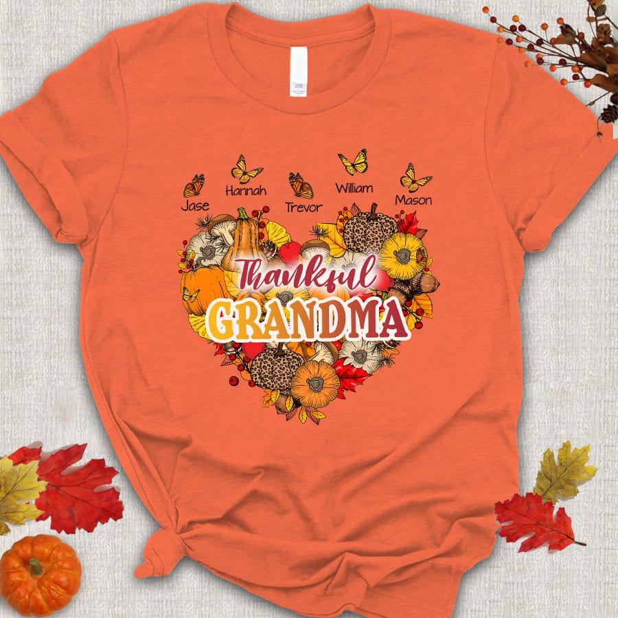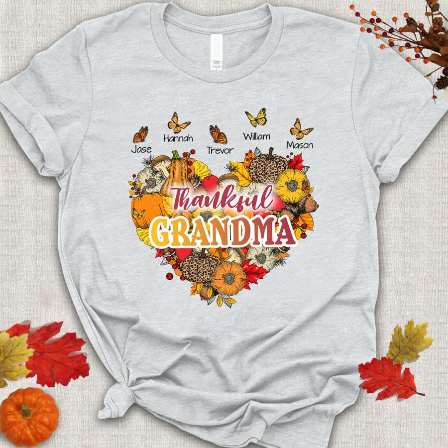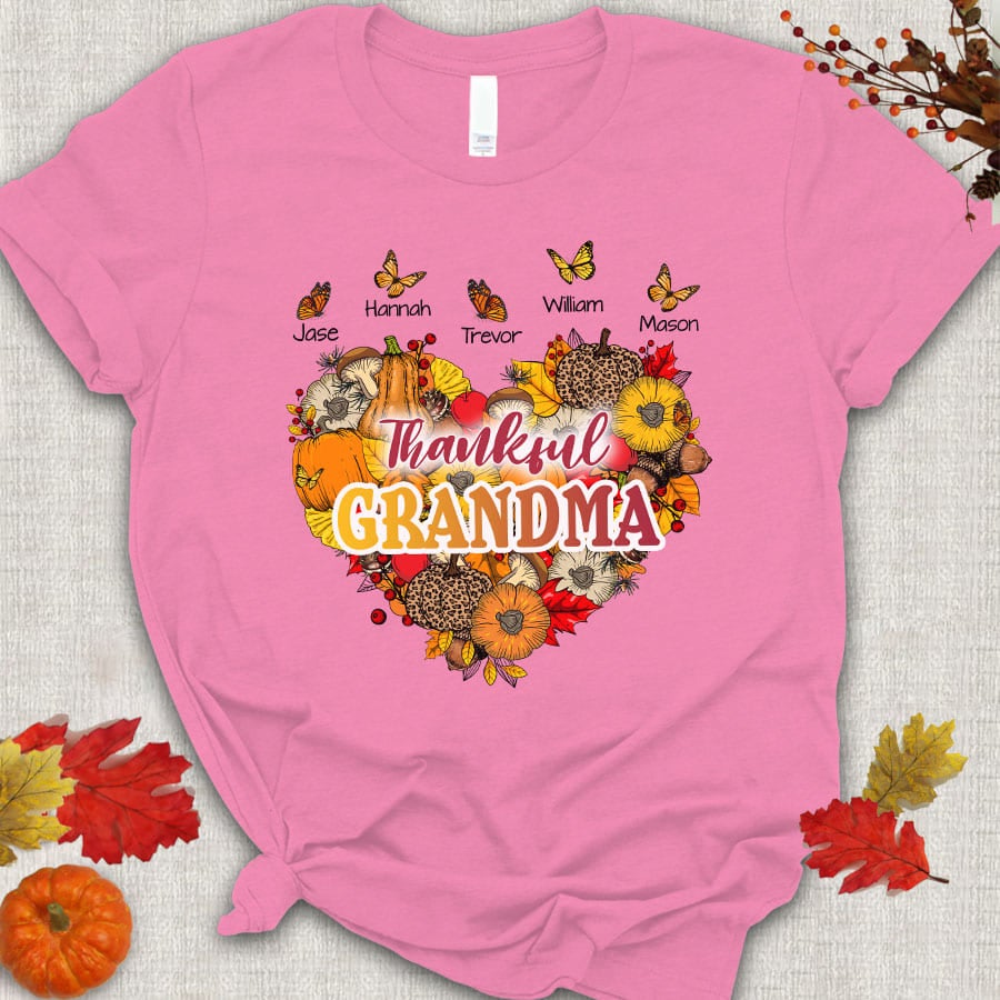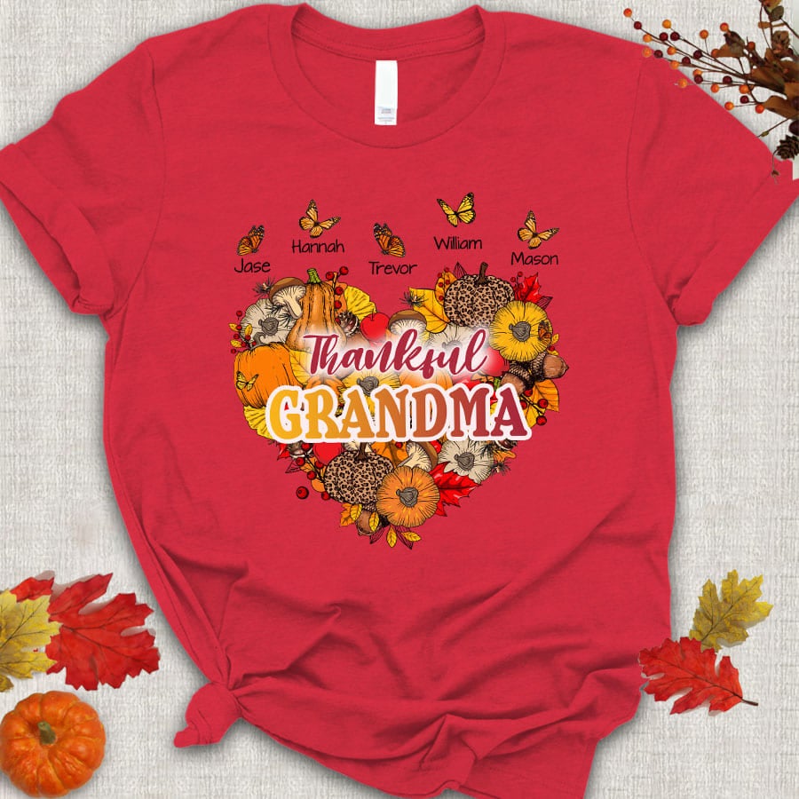 Thankful Grandma With Grandkids Heart Butterfly T-Shirt
