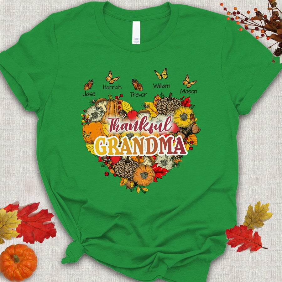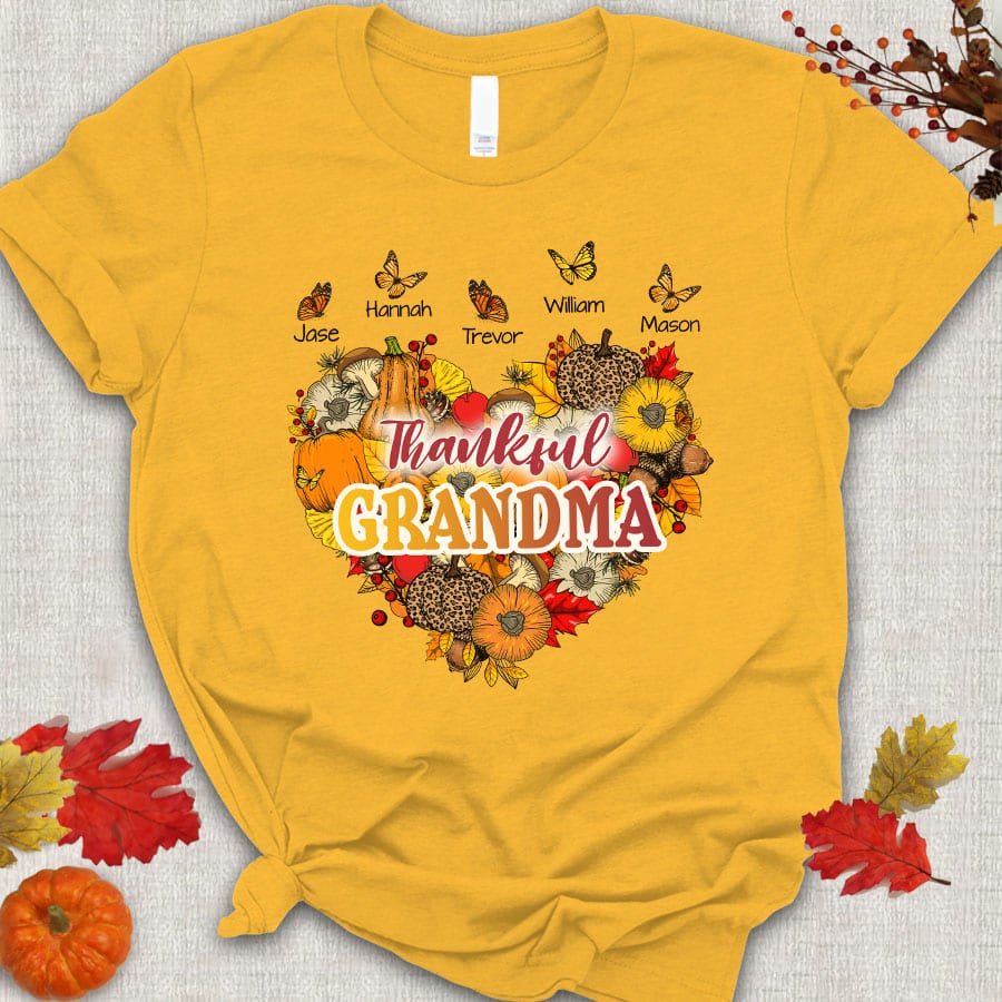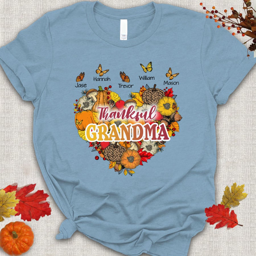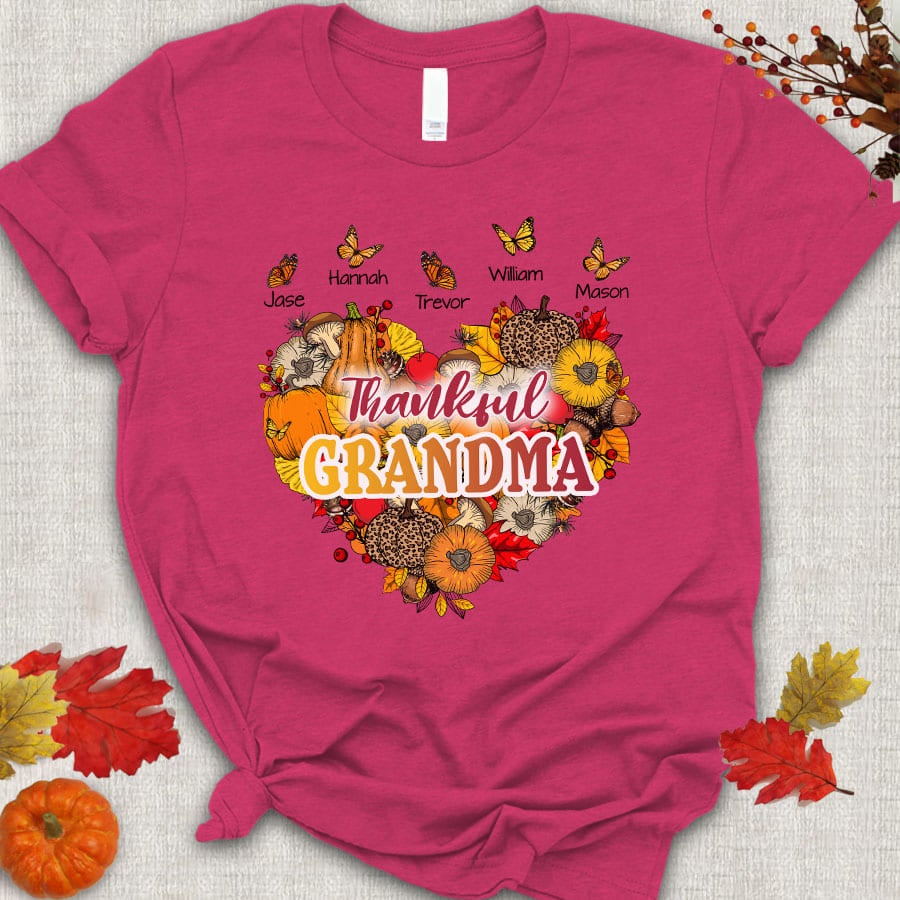 Thankful Grandma With Grandkids Heart Butterfly T-Shirt