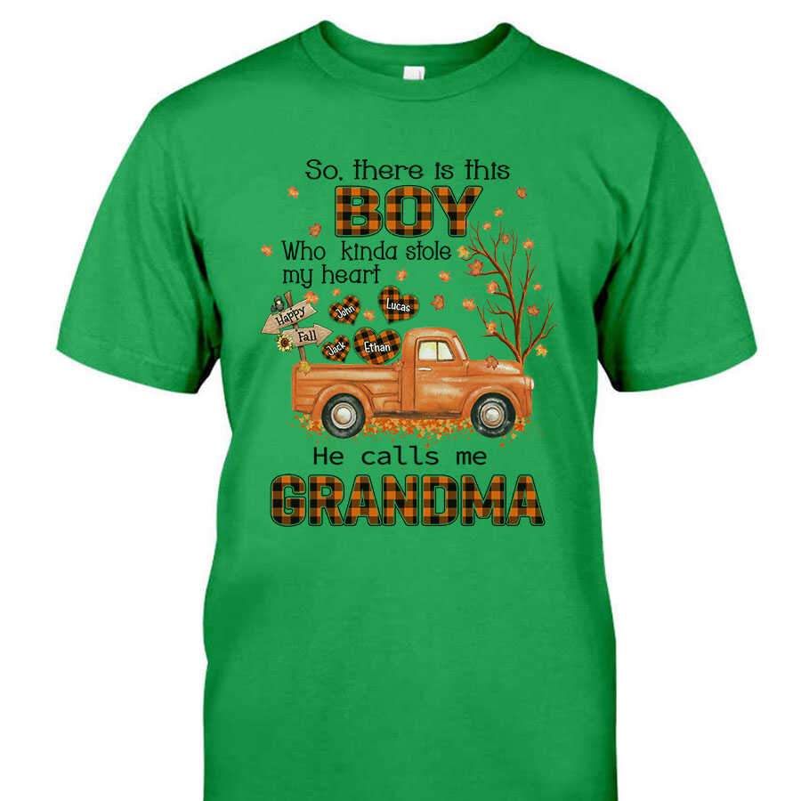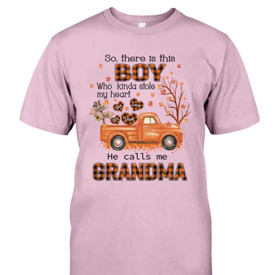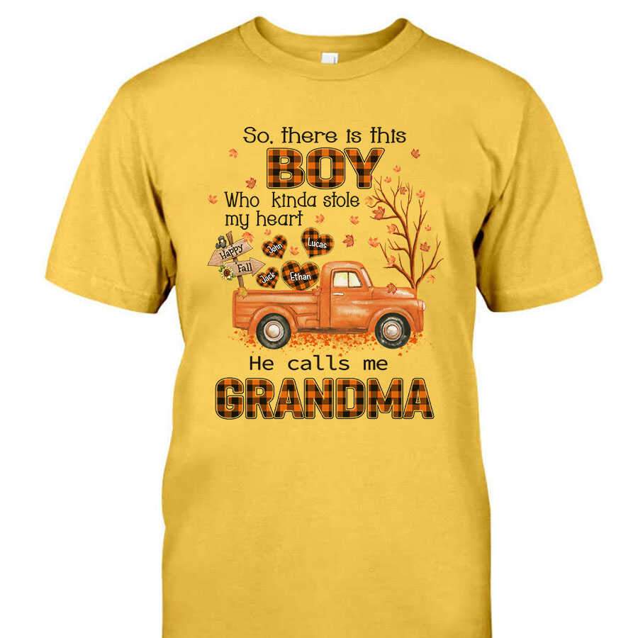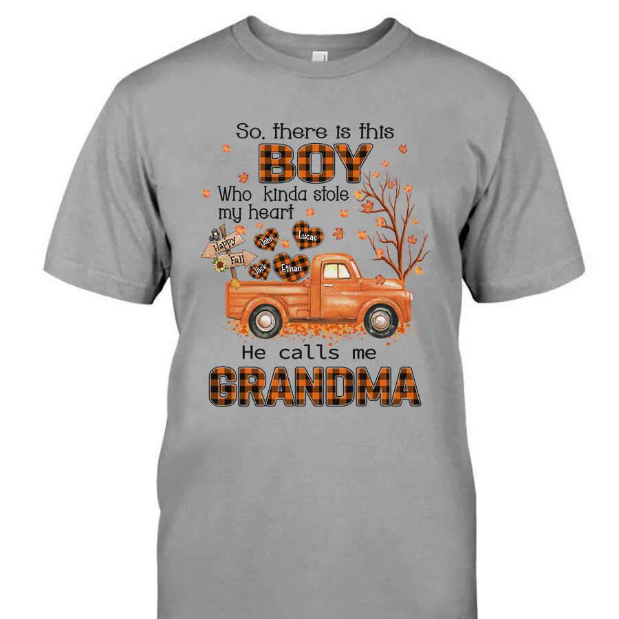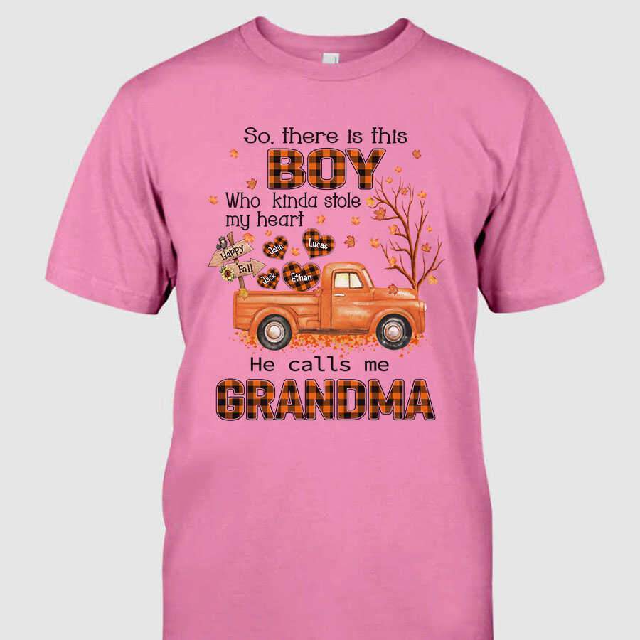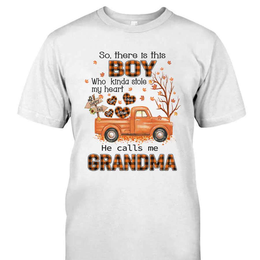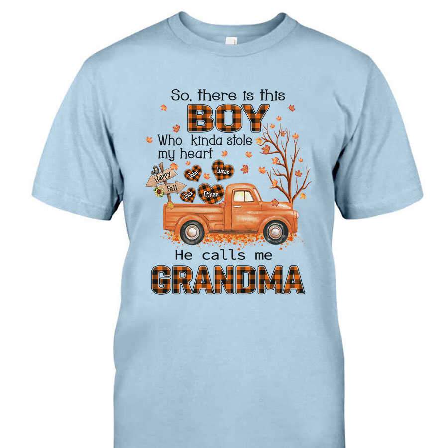 There Is This Boy – He Calls Me Grandma Truck Autumn, Personalized Grandma T-Shirt