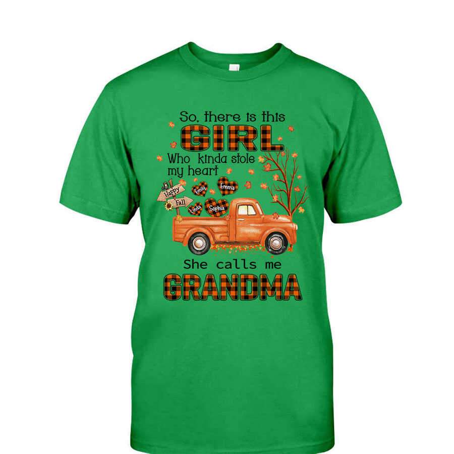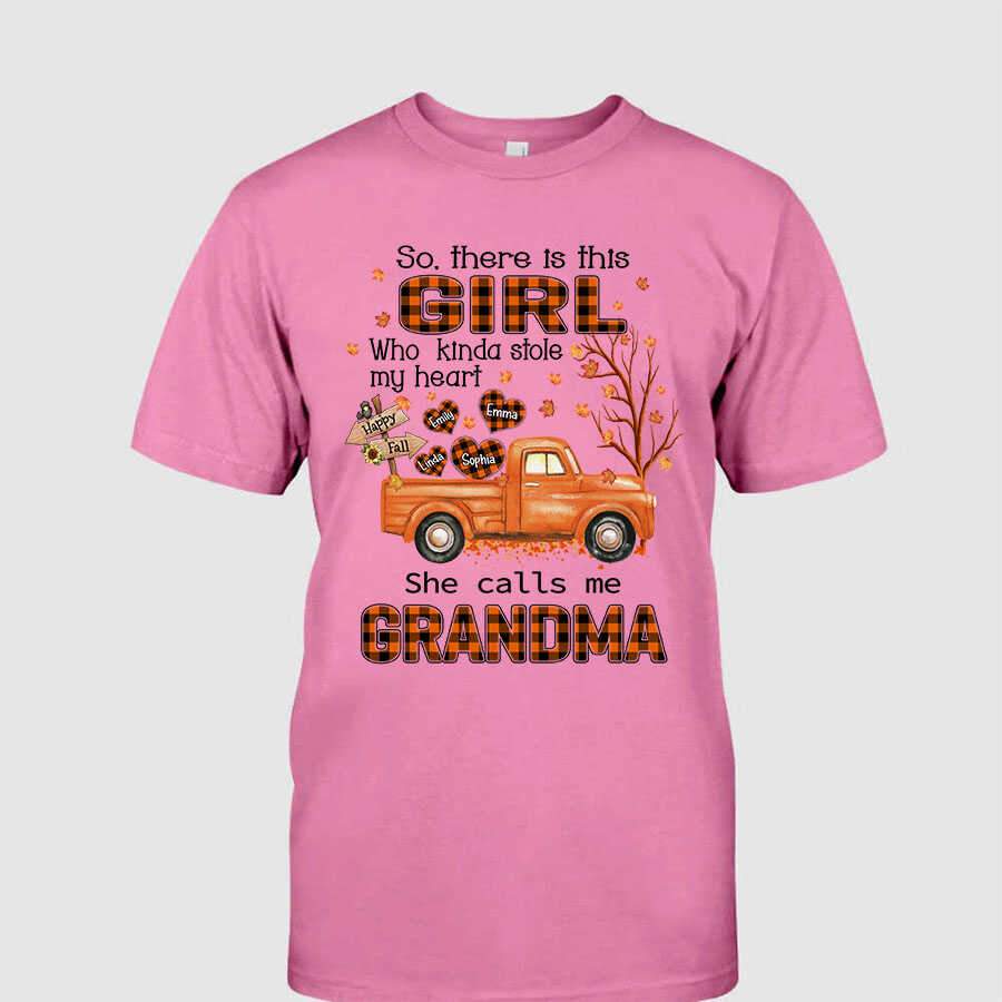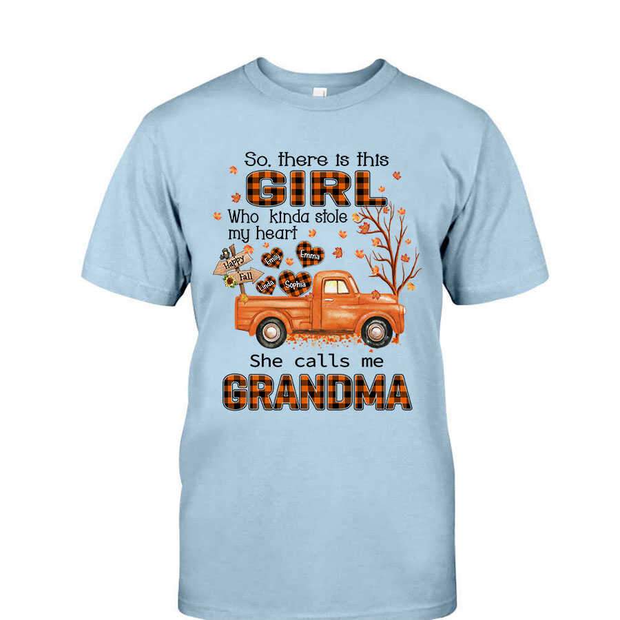 There Is This Girl- She Calls Me Grandma Truck Autumn, Personalized Grandma T-Shirt